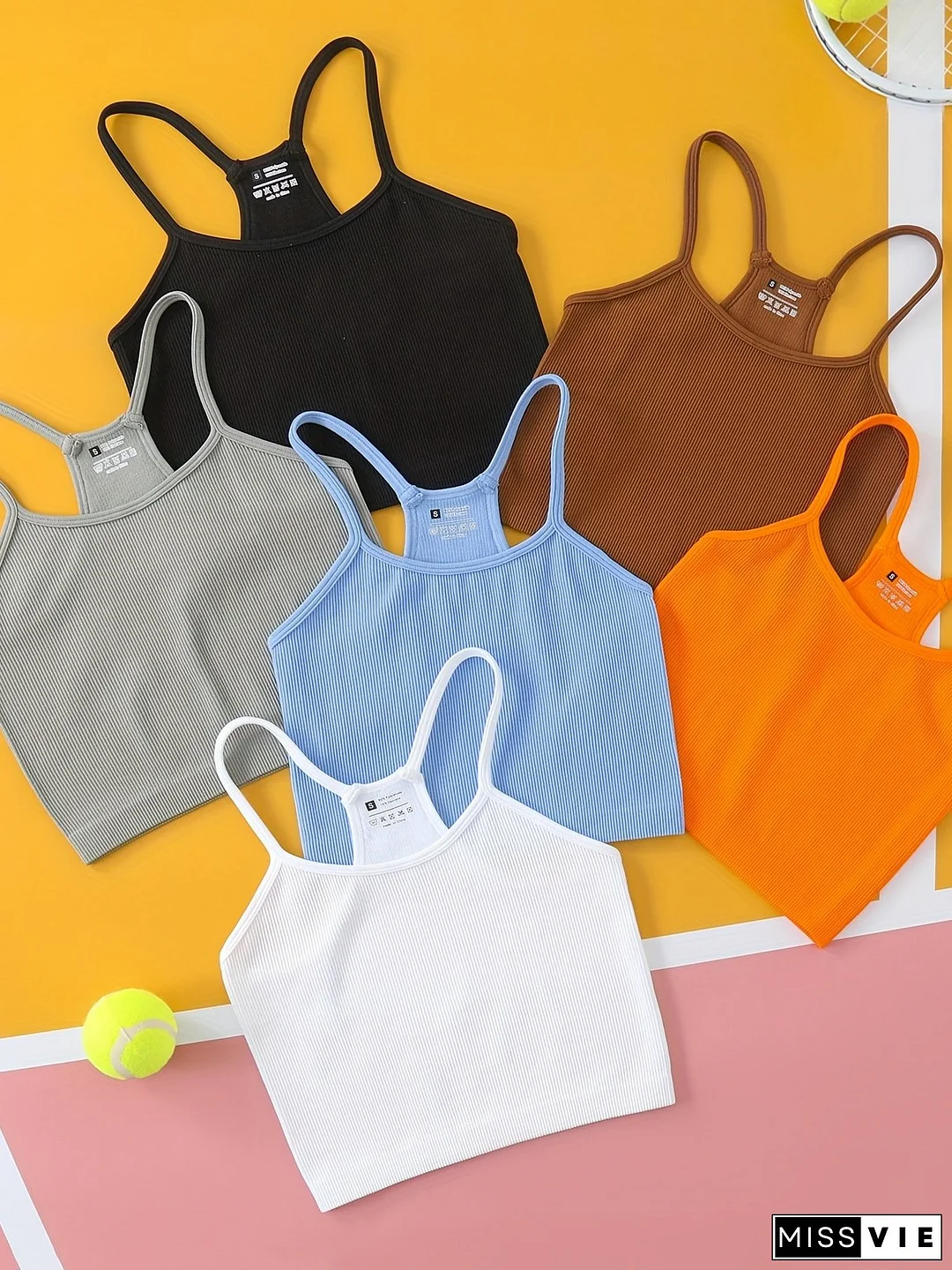 [6-Pack Seamless Crop Tops] 6-Pack Soft & Breathable Women’s Seamless Ribbed Spaghetti Strap Crop Tank Tops | No Padding, Stretchy Activewear for Yoga, Gym, Workout & Casual Wear, Minimalist Design, 6 Solid Colors