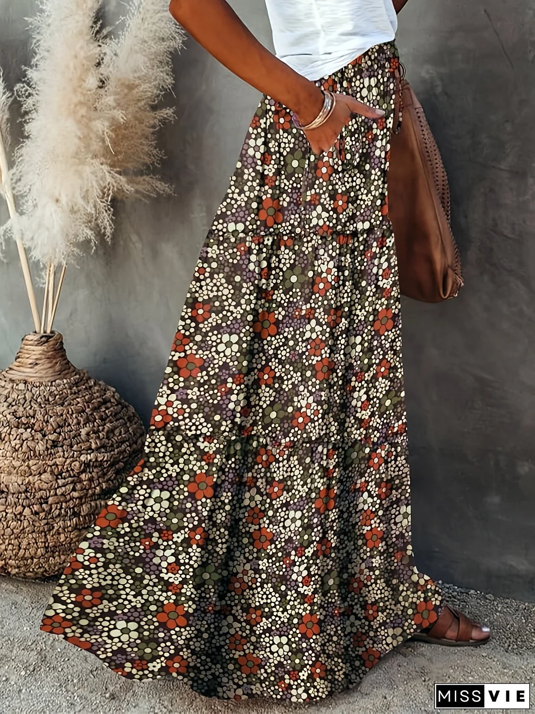 Ladies' Beach Skirt, High Waisted Loose Half Skirt, Long Skirt, European And American Travel Floral Skirt