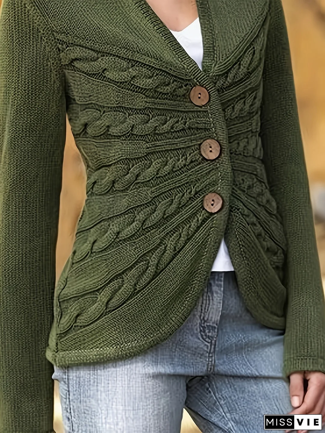 Rachel Direction Women's Ribbed V-Neck Cardigan - Long Sleeve Button Front High Elasticity Solid Color Spring/Fall Layering Piece, Elegant Special Collection, Cardigan, Versatile Fashion, Vneck Design, Textured Knitwear, Office Outfit, Breathable Material, Fashion Women
