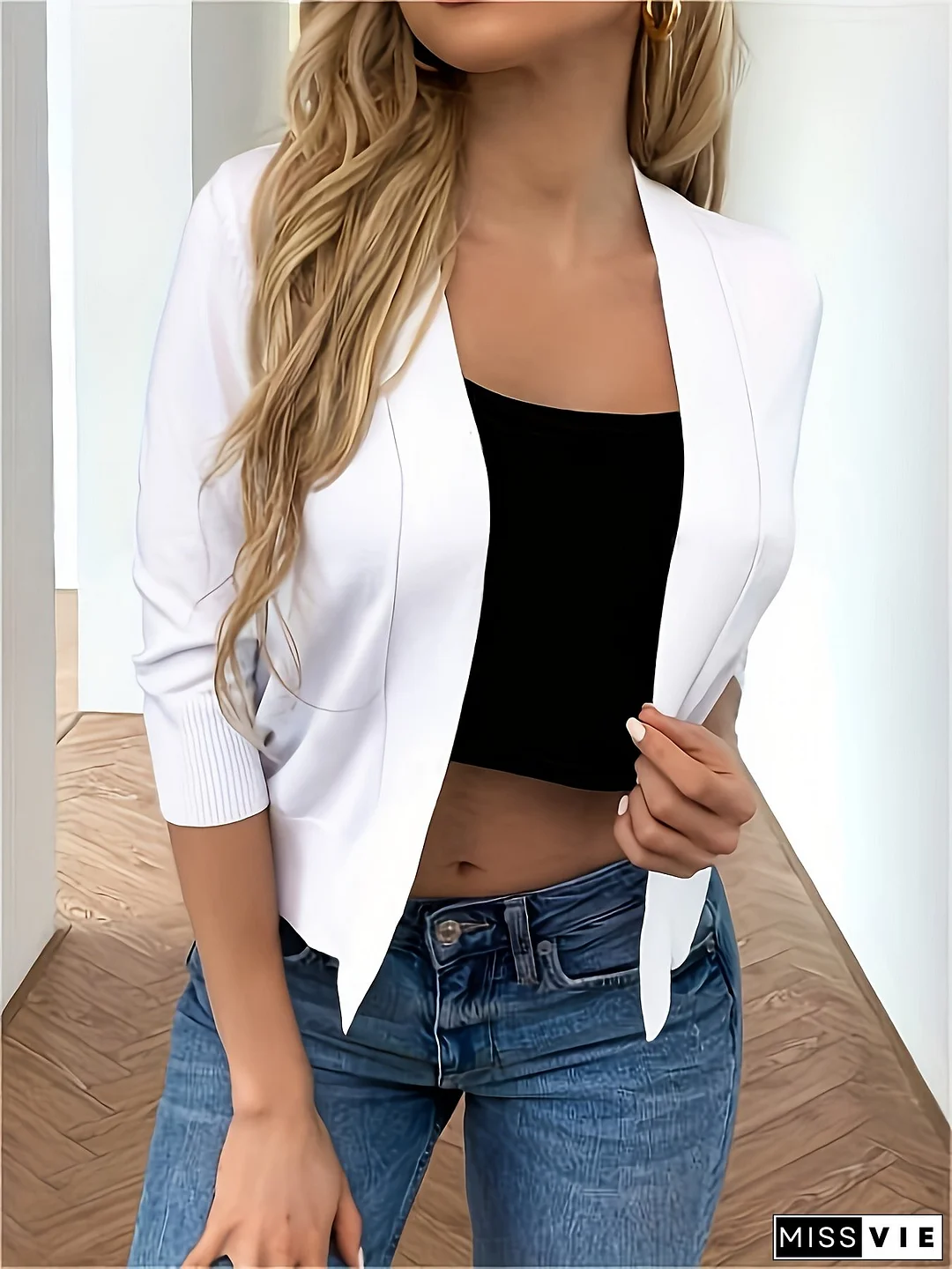 Women'S Elegant Purple Cropped Cardigan - Mid-Sleeve, Ribbed, Button-Up Front, Lightweight & Stylish for Spring/Summer/Fall, Casual Chic Wear, Medium Stretch Fabric