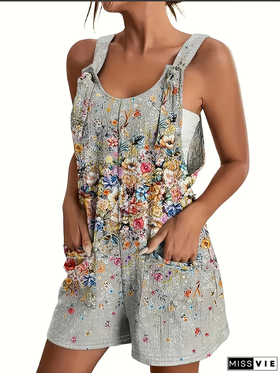 Women'S Floral Butterfly Print Sleeveless Jumpsuit with Pockets - Elastic Waist, Casual Style, All-Season Wear, Oversized Fit, Stylish Outdoor Attire|Butterfly Print Jumpsuit|Stretchy Fabric, Butterfly Print Shorts
