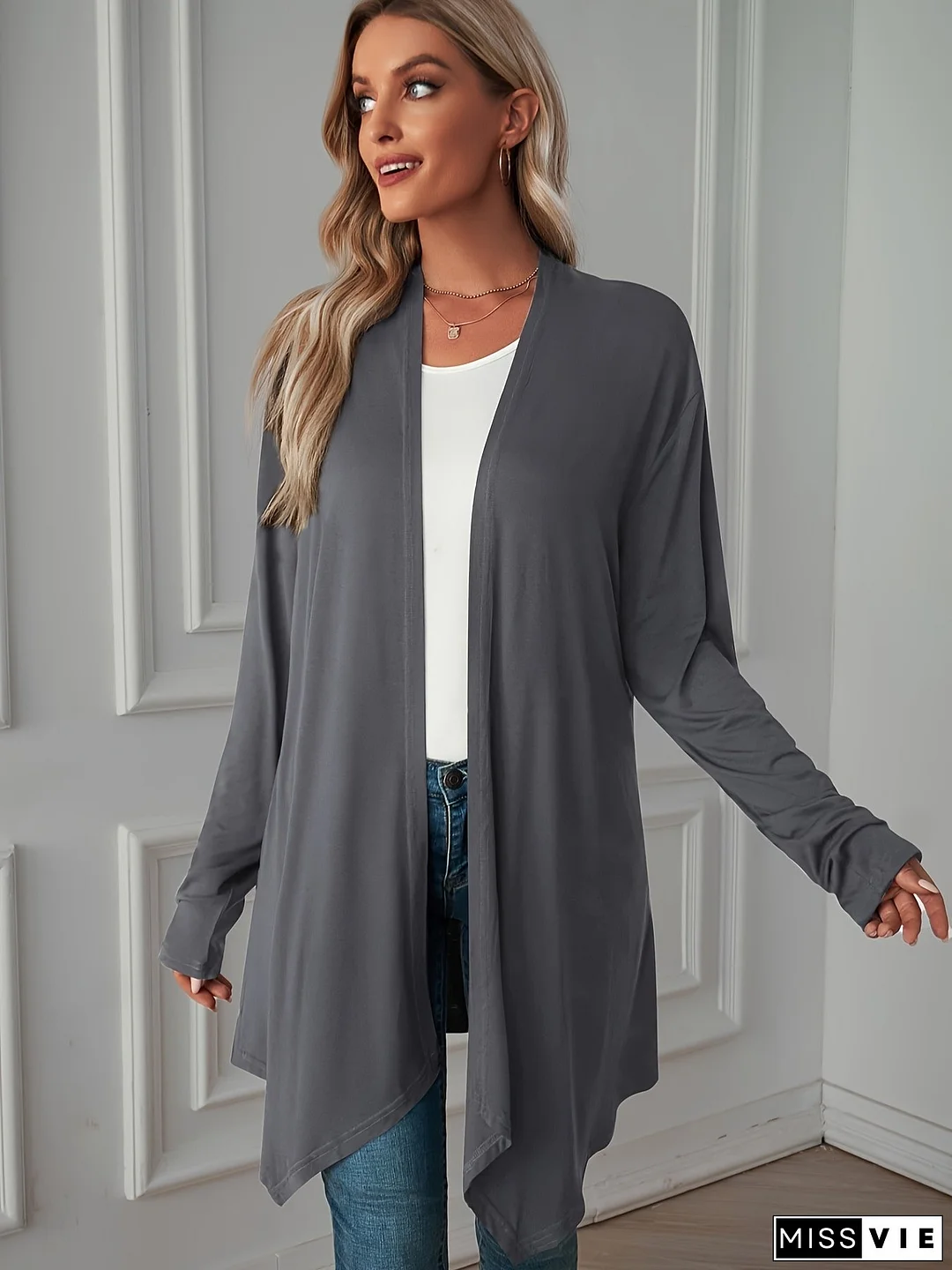Women'S Plus Size Solid Color Long Sleeve Cardigan - Casual Fall & Spring Top with V-Neck, Light Brown, Casual Wear|Vneck Sweater|Long Sleeve Top