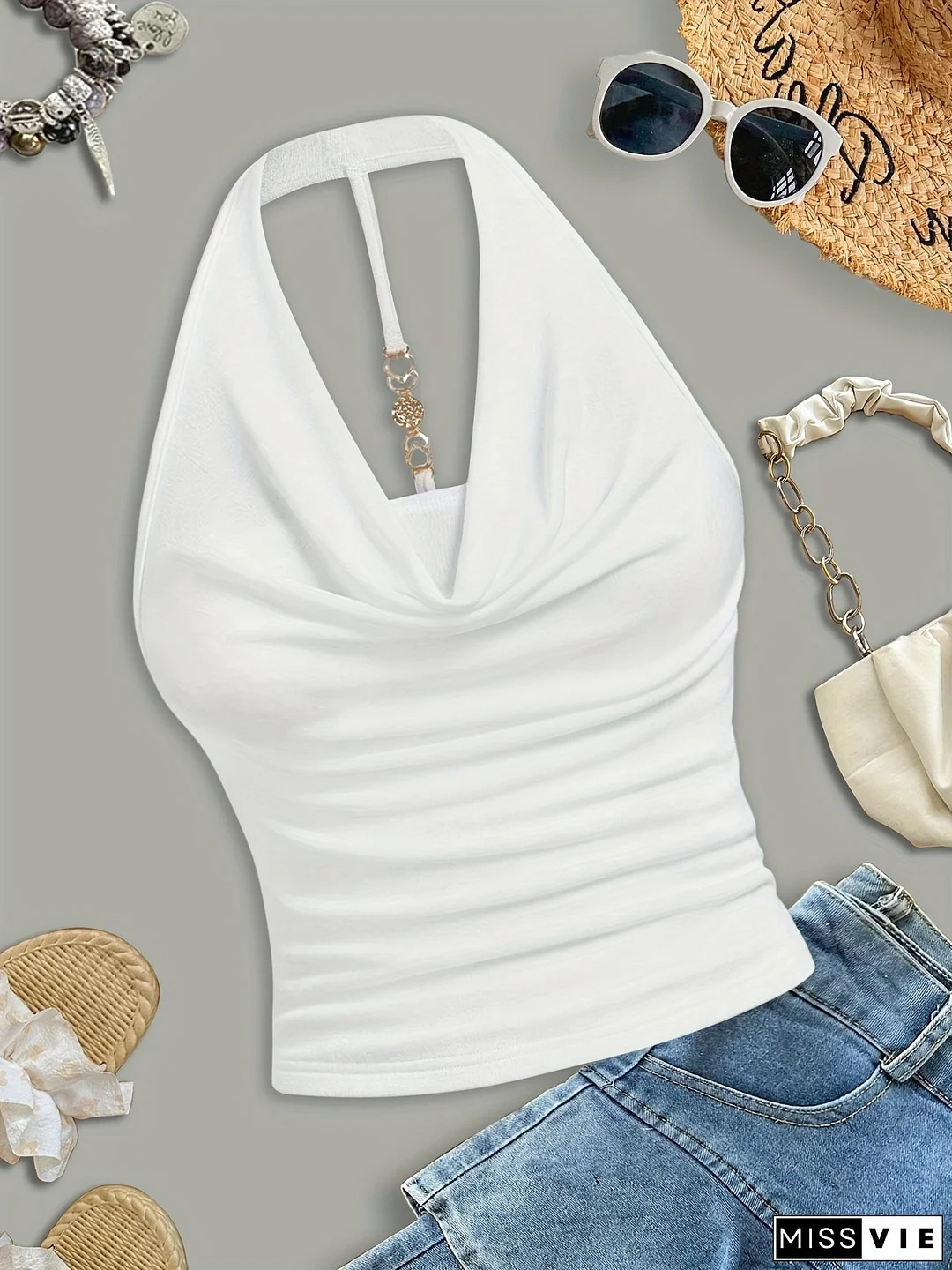 Women's Sexy Halter Neck Sleeveless Top - Semi-Sheer Stretchy Slim Fit Backless Shirt, Vibrant Yellow Solid Color, Machine Washable For Casual & Evening Outfits, Evening Wear, Backless Design, Sensual Apparel, Semitransparent Material