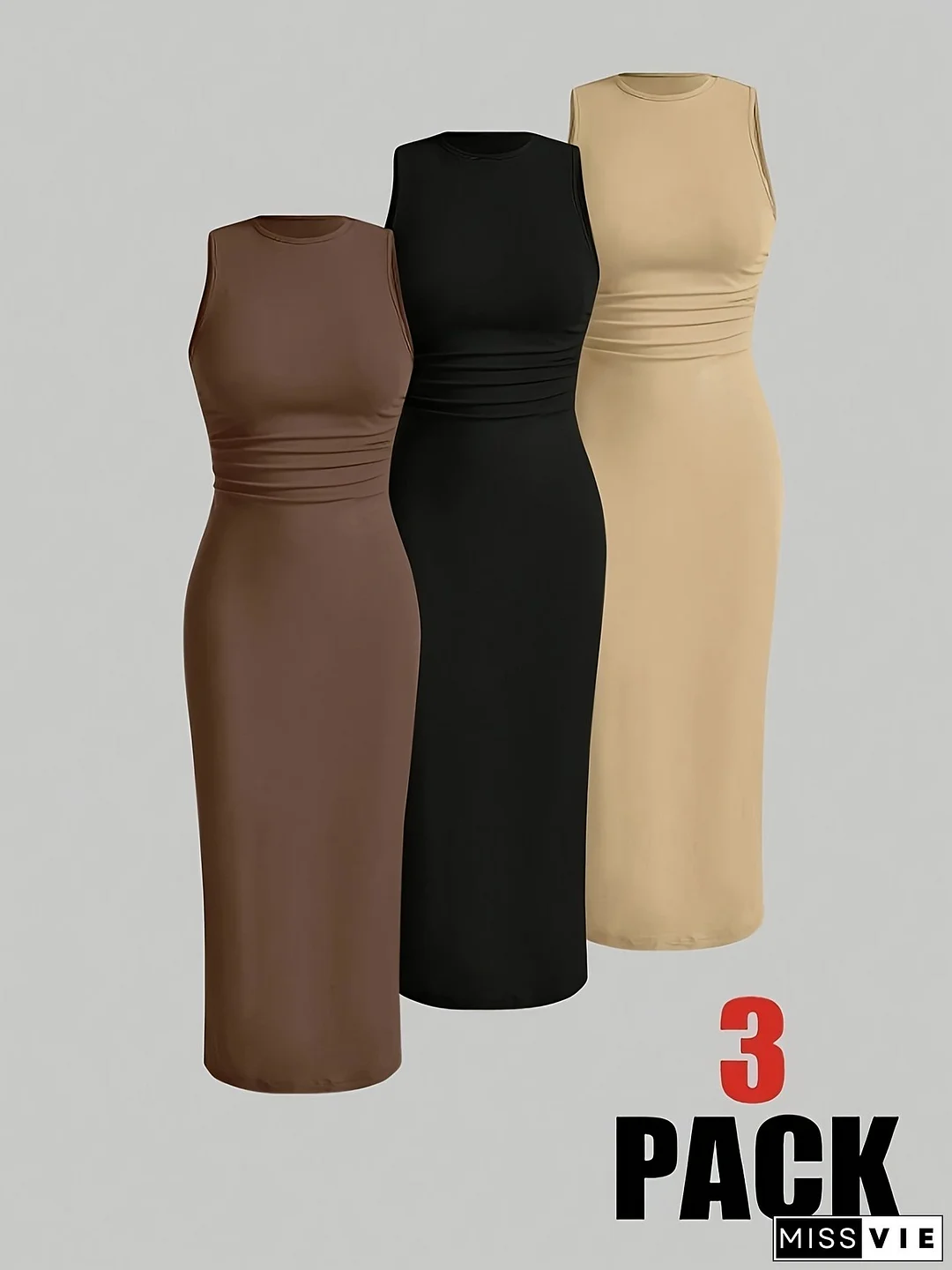 Women's Summer Casual Ruched Waist Slim Fit Sleeveless Dress - Breathable Stretchy Maxi Dress In 4 Colors (Beige/Black/Brown/Dark Grey) | Machine Washable, Dresses For Summer, Everyday Fashion, Flowy Fabric, Comfortable Wear